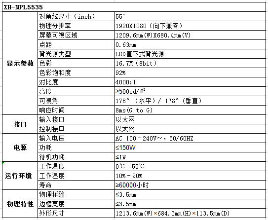 ZH-NPL5535 三星55寸3.5mm拼縫